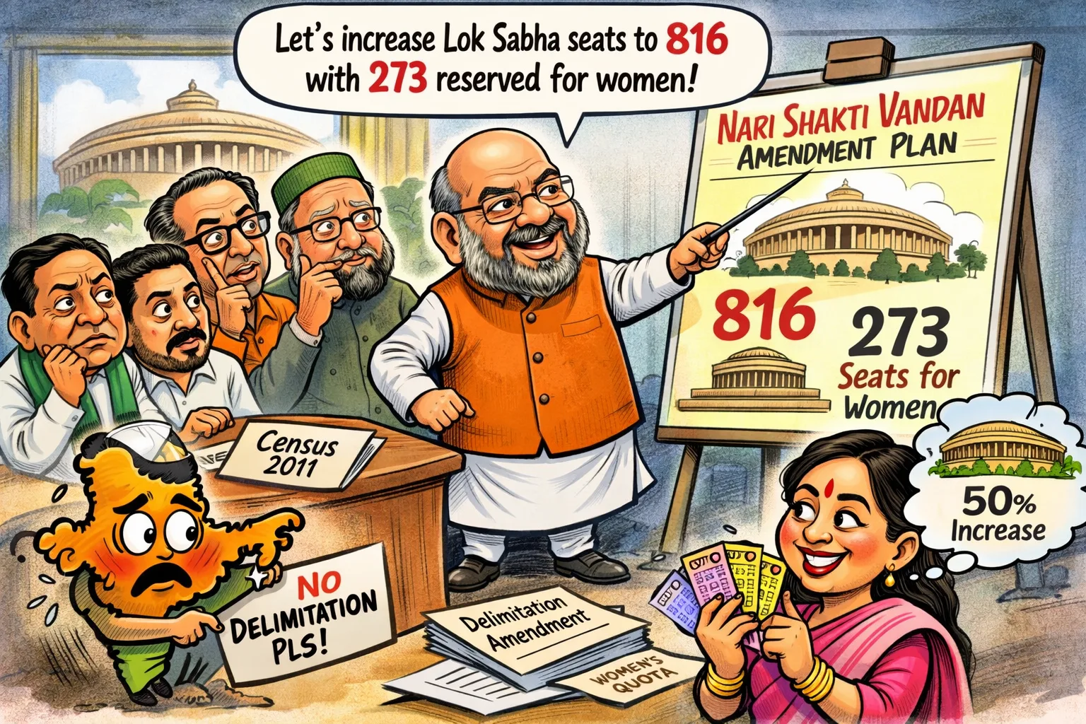 सरकार के एक सहयोगी दल के सांसद ने भी पुष्टि की कि सरकार 2011 की जनगणना के आधार पर परिसीमन करने पर विचार कर रही है और सभी राज्यों के प्रतिनिधित्व का अनुपात पहले जैसा ही रहेगा। इससे दक्षिणी राज्यों की उस चिंता को दूर करने की कोशिश होगी, जो जनसंख्या के अनुपात में सीटें बढ़ाने का विरोध कर रहे थे। सूत्रों के मुताबिक, शाह द्वारा बैठक में दिए गए सुझावों के आधार पर लोकसभा और विधानसभाओं की सीटों की संख्या में लगभग 50 प्रतिशत तक वृद्धि की जा सकती है।