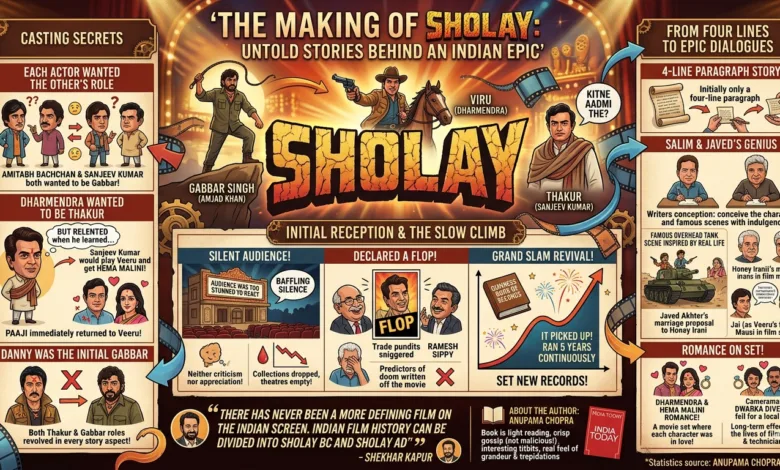 इस पुस्तक से एक उल्लेखनीय तथ्य यह निकलकर आता है कि हर अभिनेता दूसरे की भूमिका निभाना चाहता था। ठाकुर और गब्बर की भूमिकाएँ सबसे दमदार थीं। अमिताभ बच्चन और संजीव कुमार गब्बर का किरदार निभाना चाहते थे। धर्मेंद्र ठाकुर की भूमिका निभाना चाहते थे, लेकिन जब निर्देशक ने उन्हें बताया कि इस स्थिति में संजीव कुमार ‘वीरू’ बनेंगे और उन्हें हीरोइन (हेमा मालिनी) मिल जाएगी, तो वे पीछे हट गए। संजीव कुमार ने उसी समय हेमा को शादी का प्रस्ताव दिया था। धर्मेंद्र उनसे प्यार करते थे, इसलिए “पाजी” को वीरू की भूमिका में वापस आने में एक पल भी नहीं लगा। गब्बर के लिए डैनी पहली पसंद थे… और ‘शोले’ जैसी महागाथा की कहानी के हर पहलू में ठाकुर और गब्बर ही केंद्र में थे।